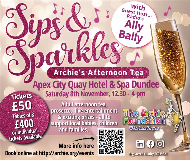 Enjoy a delicious afternoon tea paired with a glass of prosecco (or a non-alcoholic alternative), live entertainment from Radio Tay legend Ally Bally, fun raffles, games, and the chance to win exciting prizes—all in support of local babies, children, and families through Archie’s vital work.